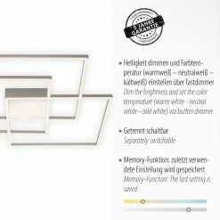 Leuchten Direkt ALINA Deckenleuchte LED Stahl gebürstet, 2-flammig, Fernbedienung, Farbwechsler