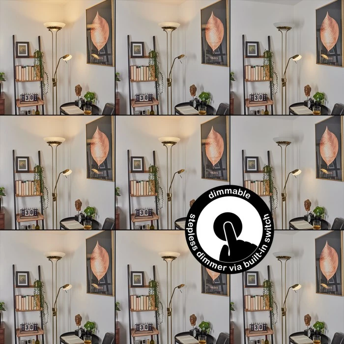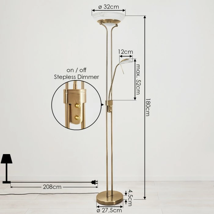 Diese Stehleuchte verfügt über einen An-/Ausschalter am Gehäuse, sowie einen Tastdimmer.Â