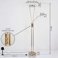 Diese Stehleuchte verfügt über einen An-/Ausschalter am Gehäuse, sowie einen Tastdimmer.Â