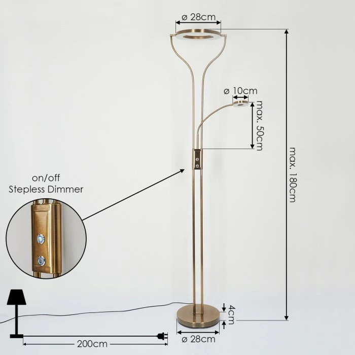 Diese Stehleuchte verfügt über einen An-/Ausschalter am Gehäuse, sowie einen Tastdimmer.Â