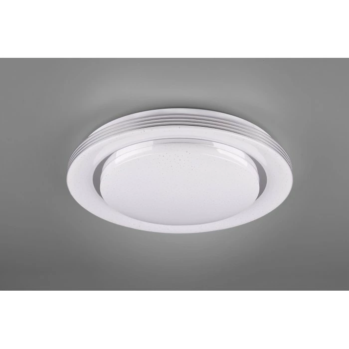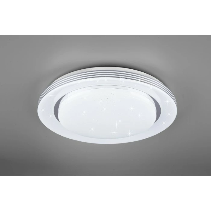 Simples Design – praktische Funktionen! Die moderne Deckenleuchte ATRIA überzeugt durch ihr modernes Design und bieten vielfältige Anwendungsmöglichkeiten. Um die Lichtstimmung individuell zu gestalten, können die Lichtfarbe und die Lichtintensität der Leuchte ganz leicht über eine Fernbedienung eingestellt werden. Richtig platziert wird die Deckenleuchte, dank des auffälligen Starlight Covers, zum absoluten Blickfang in jedem Wohnraum. Weitere Features wie die Nachtlicht- und Memoryfunktion lassen sich ebenfalls bequem über die Fernbedienung steuern. Durch das schlichte Design in Weiß, fügt sich die Deckenleuchte leicht in vorhandene Einrichtungsstile ein und lässt sich mit weiteren Farbtönen kombinieren. Darüber hinaus verfügt die Leuchte über eine moderne LED Technologie, die sich durch eine hohe Lichtqualität und Energieeffizienz auszeichnet. Im Vergleich zu herkömmlichen Halogen Leuchtmitteln lassen sich bis zu 80% der Energiekosten sparen. Zusätzlich haben LED Lichtquellen eine lange Lebensdauer, produzieren weniger Wärme und schonen die Umwelt.
